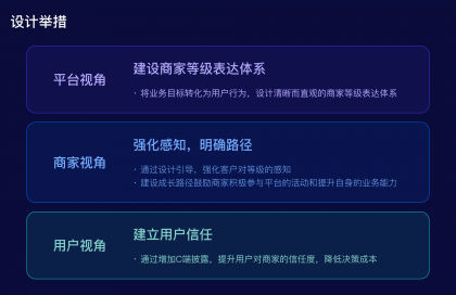 我們要強(qiáng)化商家的等級感知,通過視覺和交互引導(dǎo)等方式,強(qiáng)化商家對等級感知的重要性和影響。