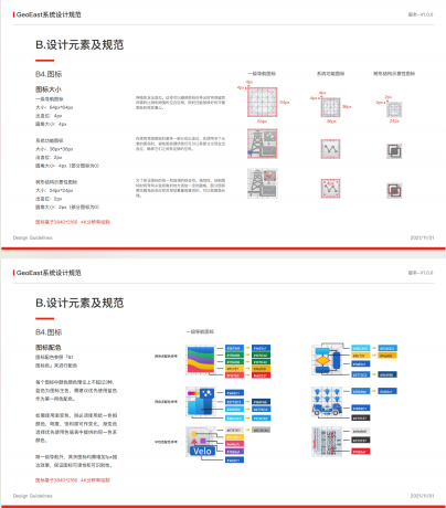 下圖是藍(lán)藍(lán)設(shè)計給中國石油設(shè)計界面和圖標(biāo)后,制定的UI規(guī)范。