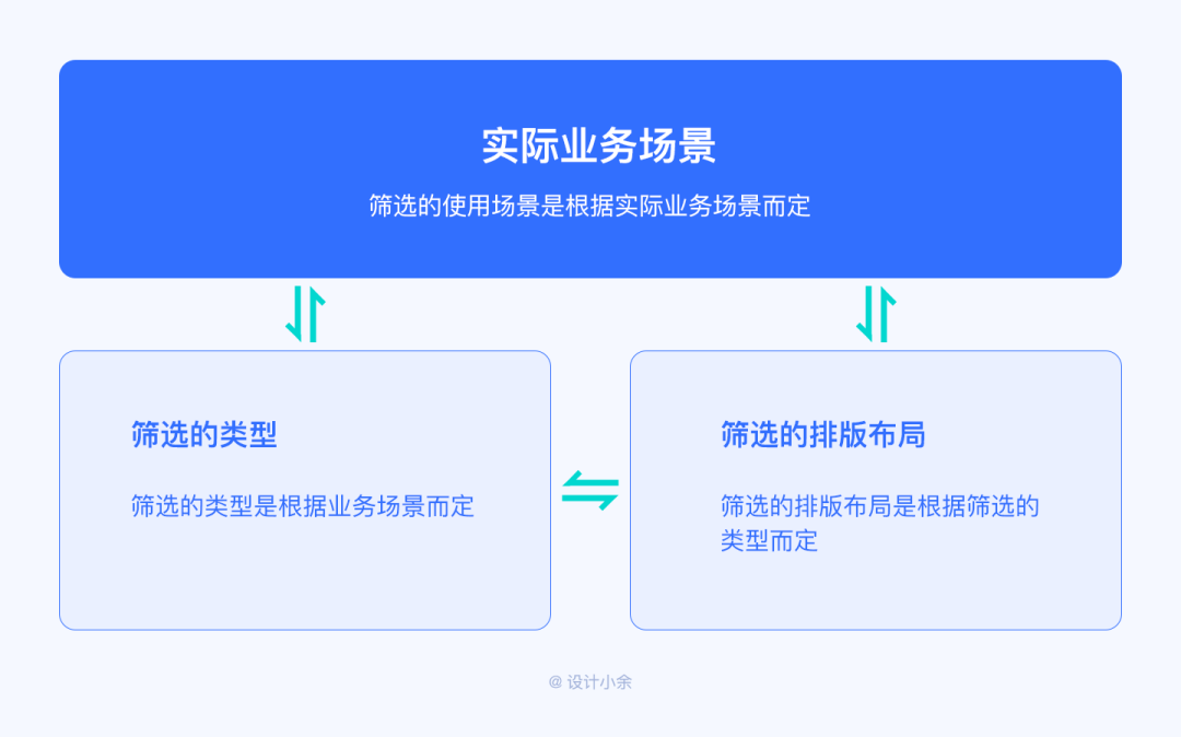 篩選的類型是根據(jù)業(yè)務(wù)場(chǎng)景而定,篩選的排版布局是根據(jù)篩選的類型而定,篩選的使用場(chǎng)景是根據(jù)實(shí)際業(yè)務(wù)場(chǎng)景而定,所以首先我們需要理解清楚真實(shí)的業(yè)務(wù)場(chǎng)景,再通過(guò)分析選擇適合的篩選類型,當(dāng)已經(jīng)知道了篩選類型,我們只需要根據(jù)篩選的條件和頁(yè)面的交互及空間利用情況選擇合適的布局方式即可。
