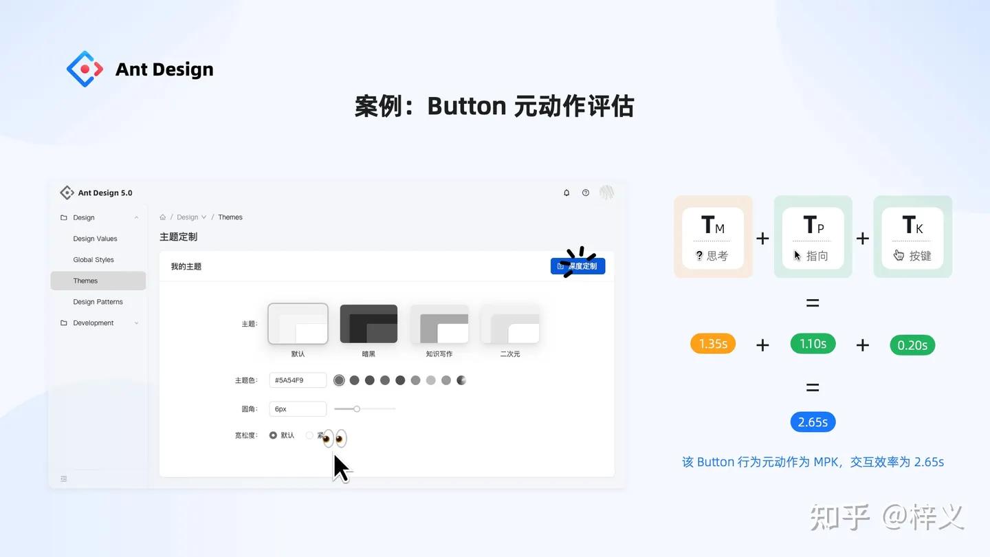如此,我們定義了按鈕的交互行為序列為 MPK。更進(jìn)一步,如果我們能測(cè)得這些元?jiǎng)幼鞯慕换バ剩覀兙湍艿玫桨粹o這個(gè)組件的交互質(zhì)量了。