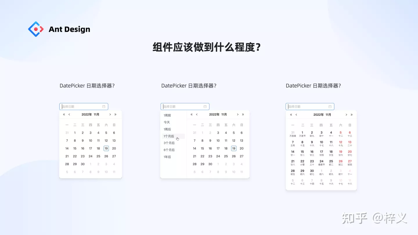 第二個(gè)問題,同樣都是日期選擇器組件,理論上它可以承載很多功能,那么,我們?cè)谠O(shè)計(jì)系統(tǒng)里應(yīng)該做到何種程度才算合適呢?