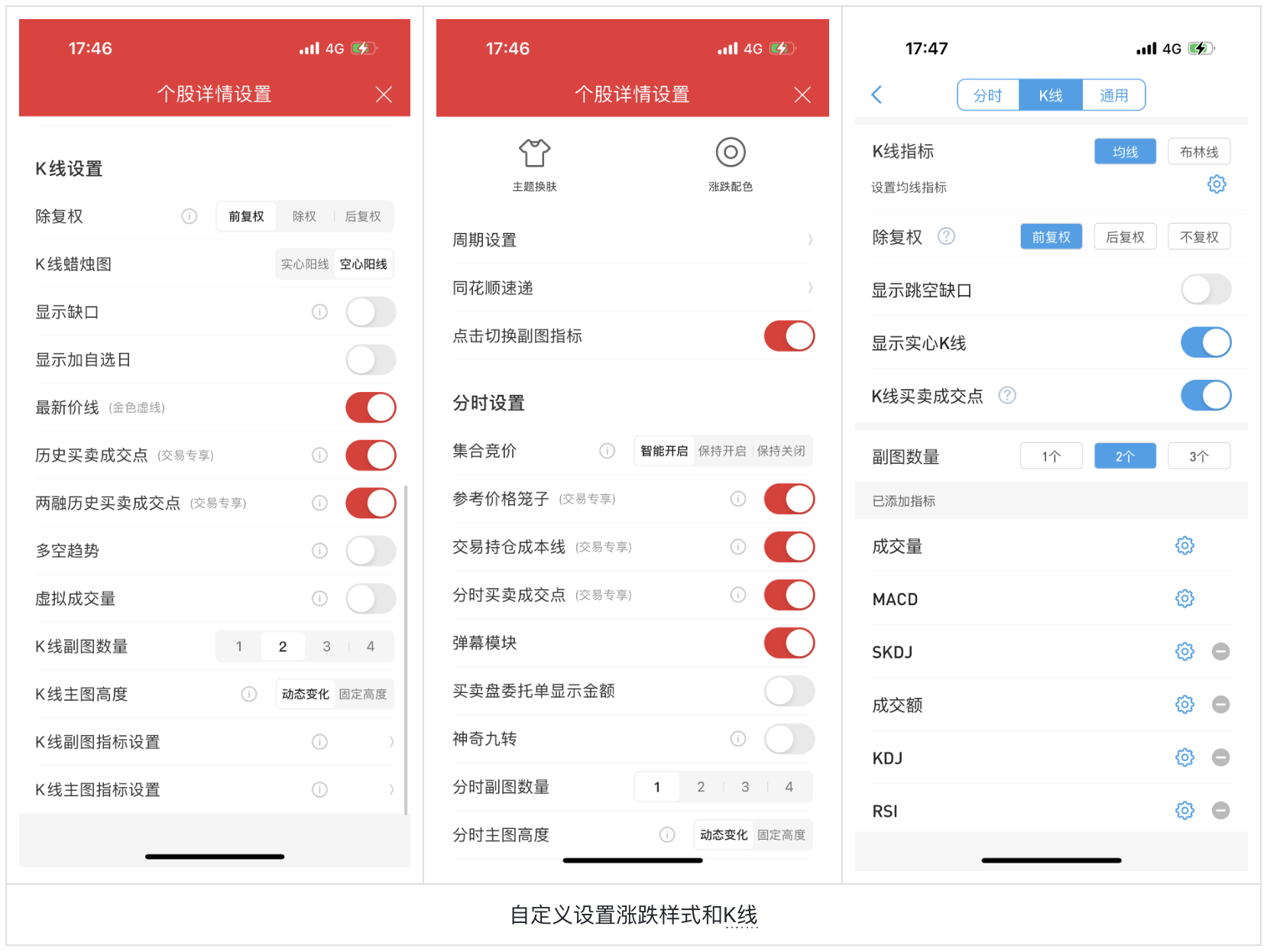 舉個(gè)例子,在個(gè)股詳情K線圖頁面,上漲用空心圖形表示,下跌用實(shí)心圖形表示,這種方法不僅幫助色盲用戶識(shí)別信息,還增加了視覺上的吸引力。