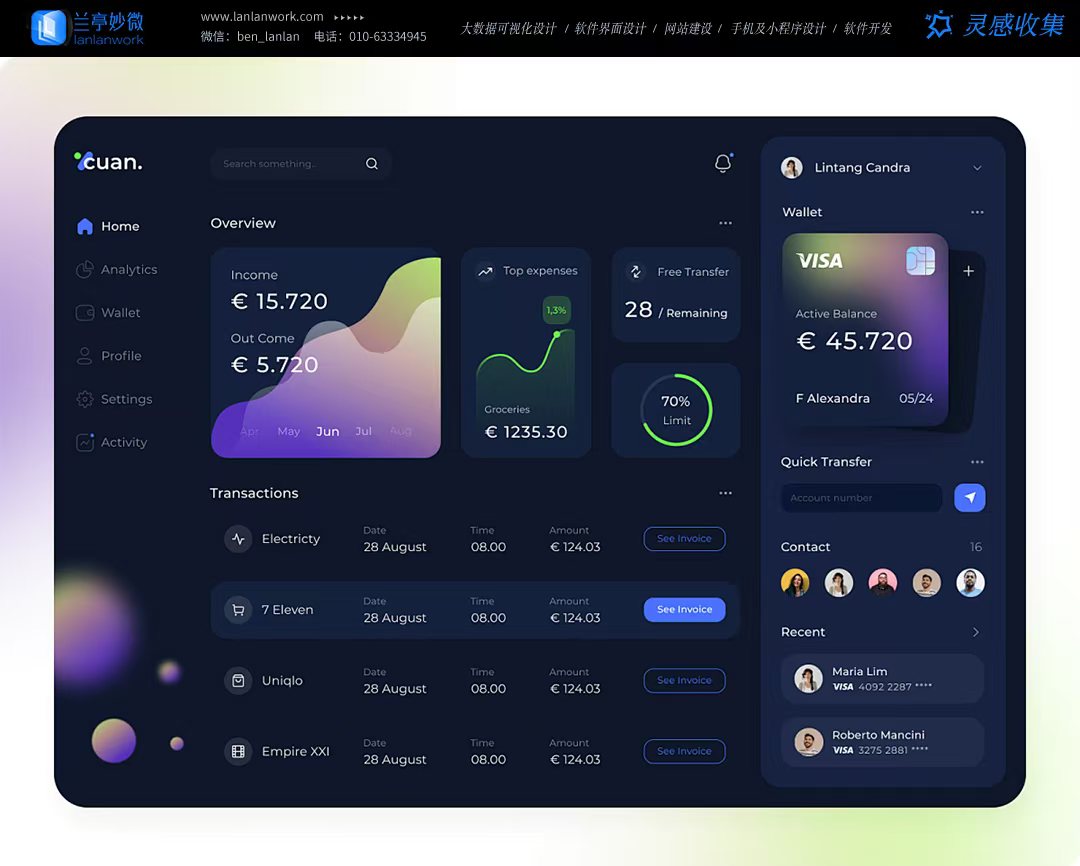 以下是一些黑色卡片式界面設(shè)計(jì)的優(yōu)秀案例: