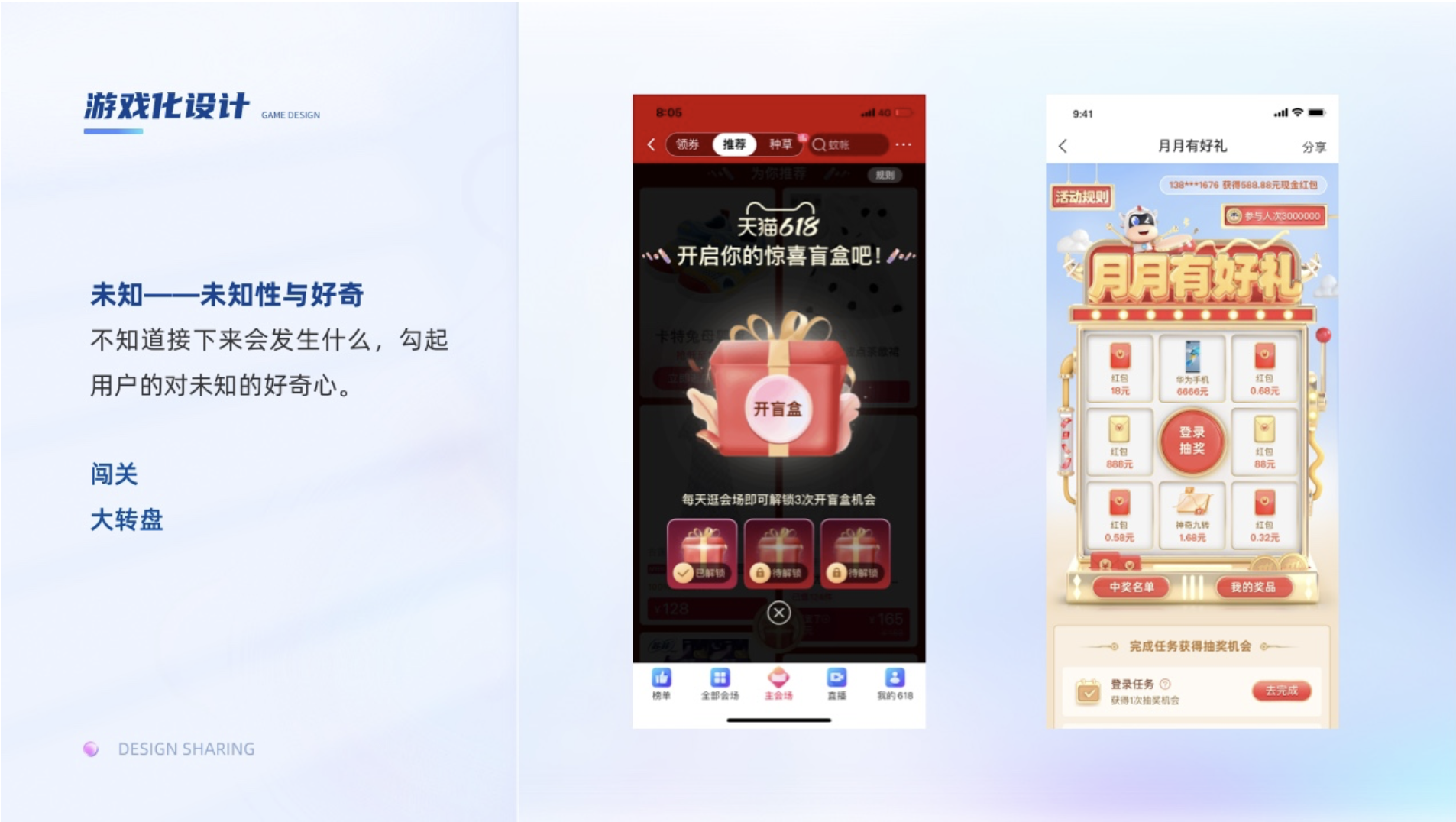 不知道接下來會發(fā)生什么,勾起用戶的對未知的好奇心。比如闖關(guān),玩家不斷闖關(guān)就是這種未知帶來的牽引。在活動運(yùn)營中最常見的就是大轉(zhuǎn)盤抽獎,現(xiàn)在比較流行結(jié)合盲盒的活動,就是滿足獵奇心理,讓用戶欲罷不能.