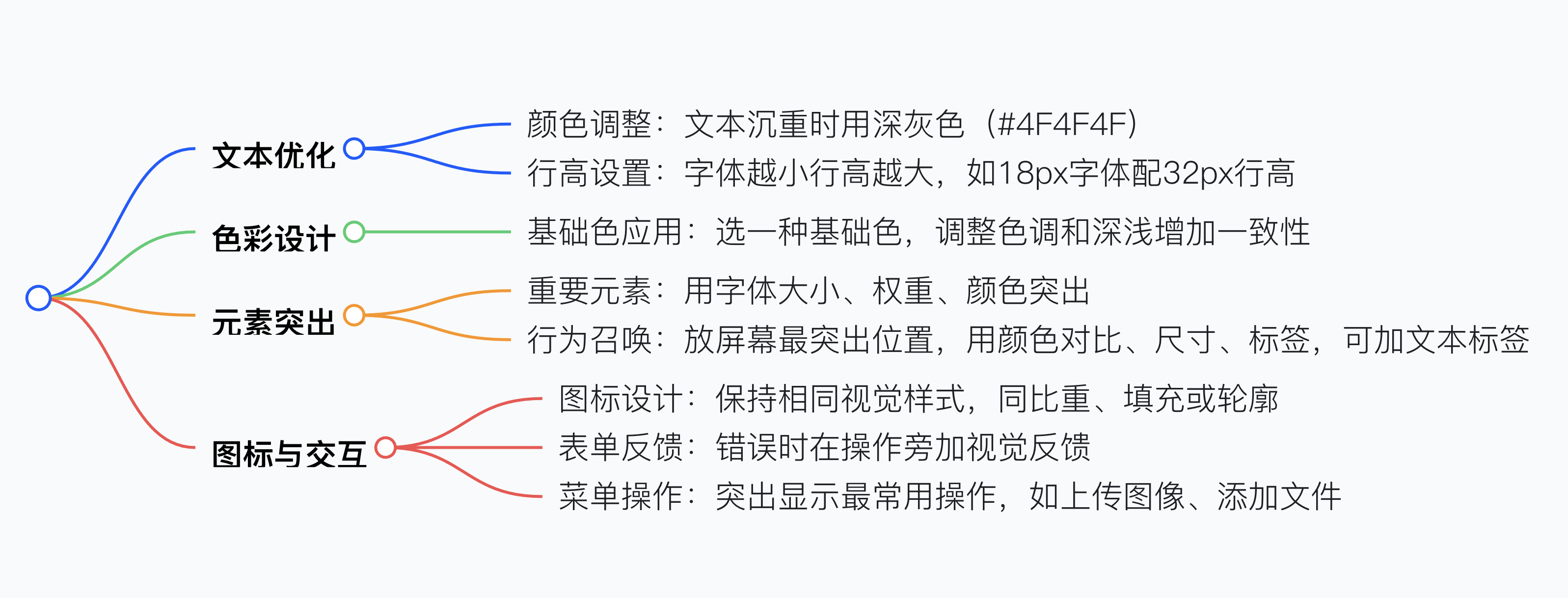 - 當長篇內(nèi)容的文本看起來沉重時,可將顏色改為類似深灰色(#4F4F4F),能使文字更易識別,減輕視覺沉重感。