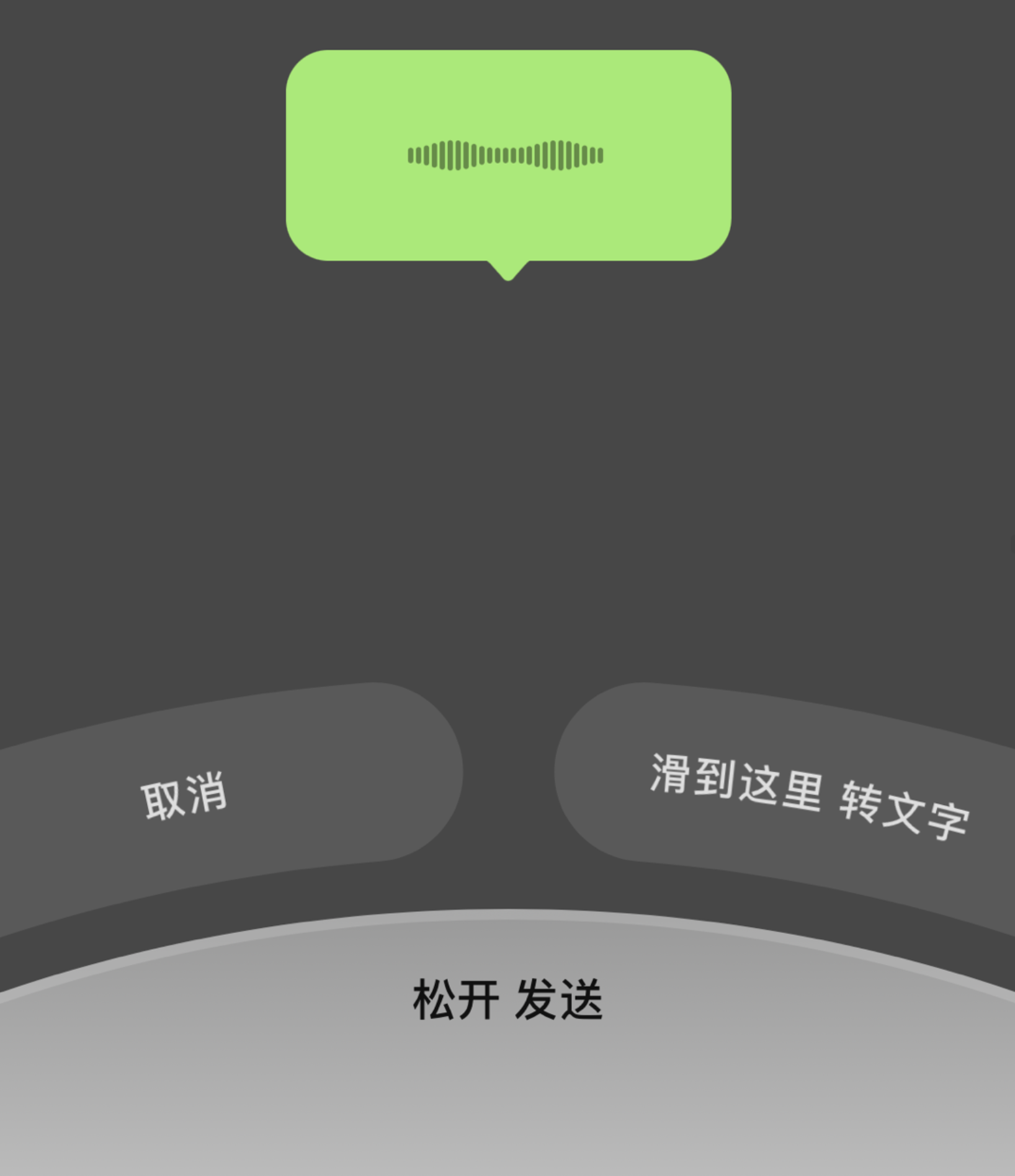 微信優(yōu)化了語(yǔ)音發(fā)送流程的視覺(jué)表現(xiàn),操作指引更清晰人性化,如明確 “滑到這里轉(zhuǎn)文字”“松開(kāi)發(fā)送”“松手取消” 等,能滿足各年齡段用戶的操作認(rèn)知。