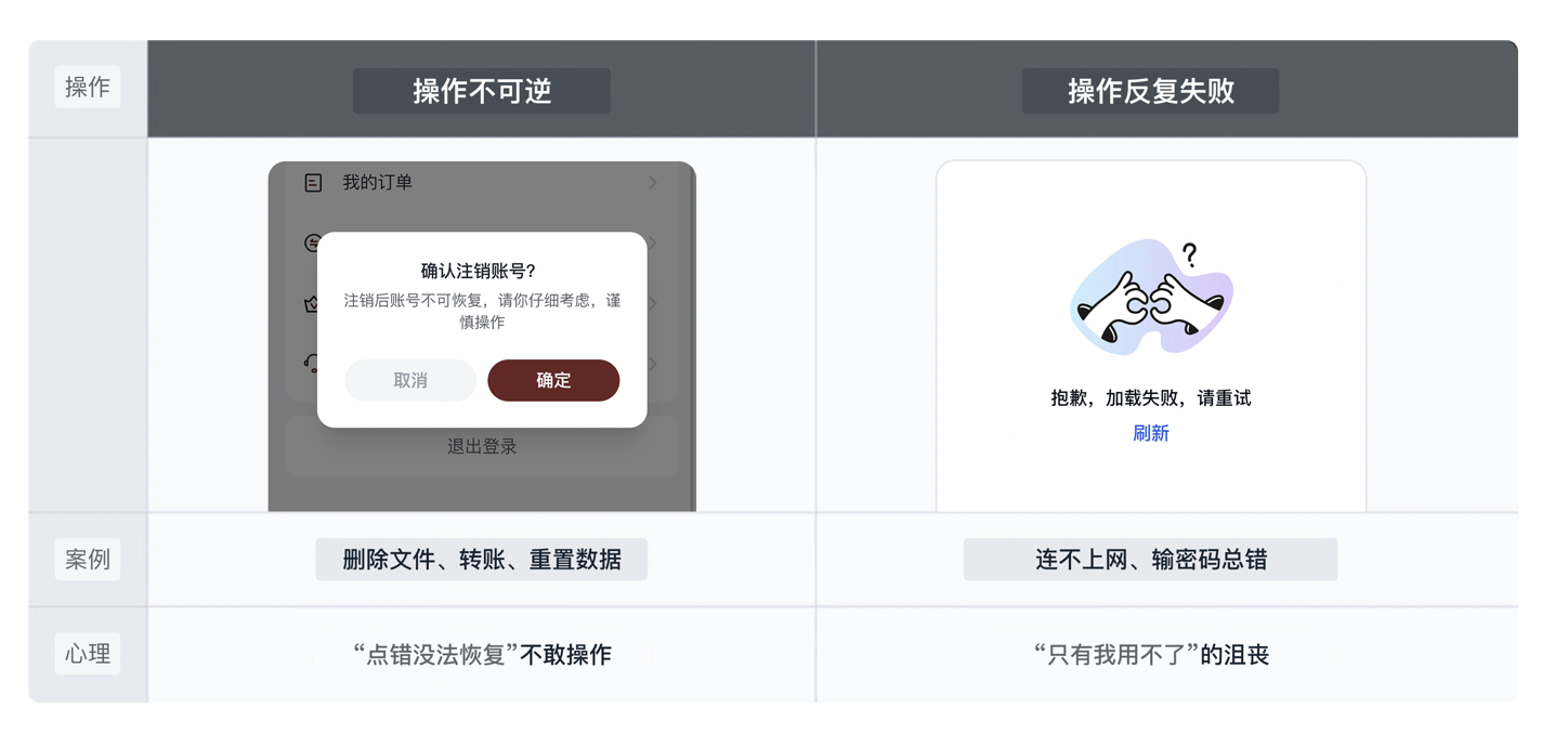- 不可逆操作:刪除文件、注銷賬號、轉(zhuǎn)賬,一旦點錯就可能造成損失。我見過有人誤點 “注銷賬號”,看到 “注銷后不可恢復(fù)” 的提示,手都在抖;