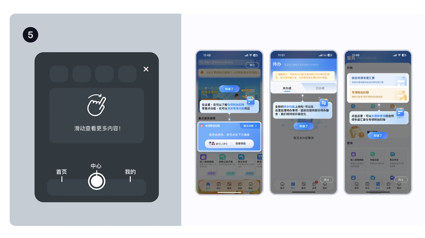 - 例子:稅務(wù) APP 新增 “待辦功能” 后,會(huì)在 “待辦” 入口旁彈氣泡,告訴用戶 “這里能處理未辦結(jié)事項(xiàng)”,用戶點(diǎn) “知道了” 就關(guān)閉,不影響正常使用;