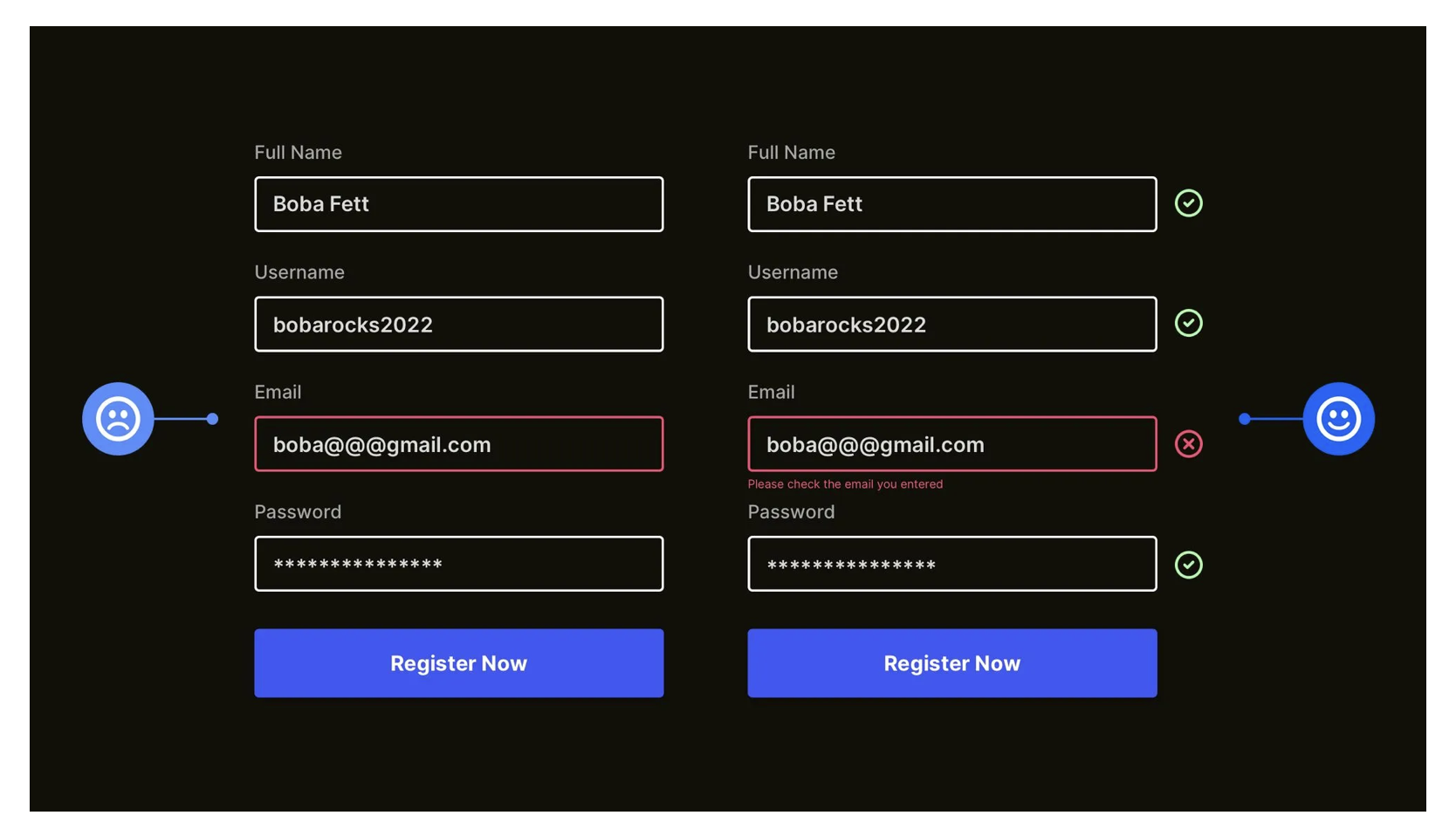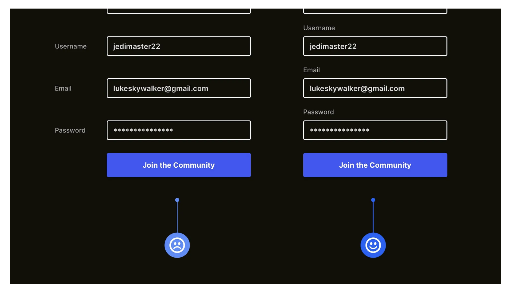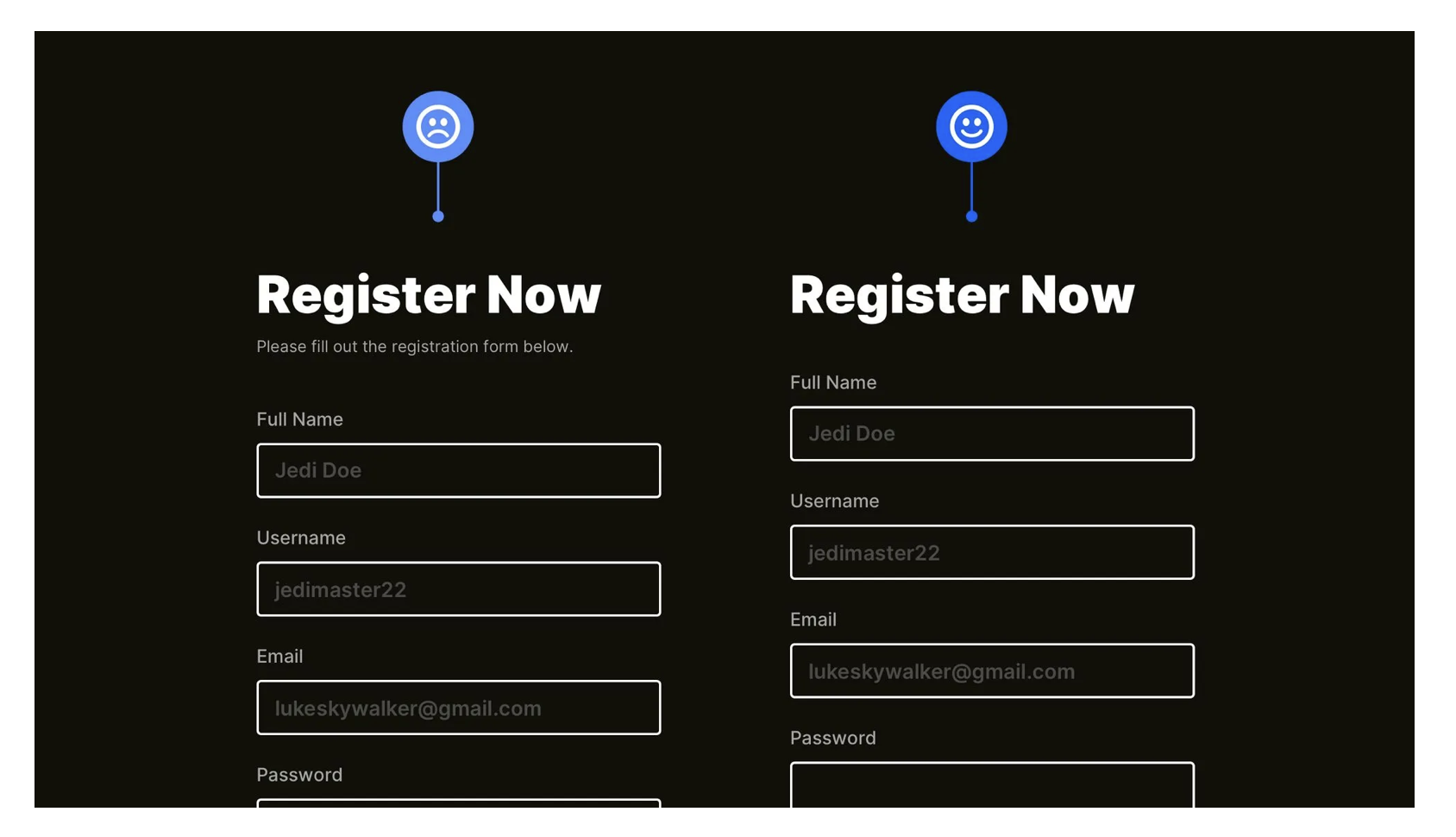 很多產(chǎn)品用 “紅色邊框” 提示表單錯(cuò)誤,但這種設(shè)計(jì)對(duì)色盲用戶無效 —— 他們無法分辨 “紅色” 與其他顏色,會(huì)完全忽略錯(cuò)誤提示,導(dǎo)致反復(fù)提交失敗。