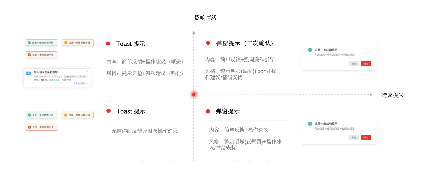 - 力度適當(dāng):根據(jù)風(fēng)險(xiǎn)等級(jí)調(diào)整語氣,預(yù)判用戶可能面臨的損失或情緒變化。比如普通操作失敗,不用過于否定,“當(dāng)前已是第一輪,操作失??!” 改為 “當(dāng)前為第一輪審批,暫無法執(zhí)行該操作” 更溫和;涉及數(shù)據(jù)安全的重要提示,語氣可稍重但不命令,“現(xiàn)在關(guān)閉您的信息可能會(huì)丟失” 比 “關(guān)閉就丟數(shù)據(jù)” 更易接受。