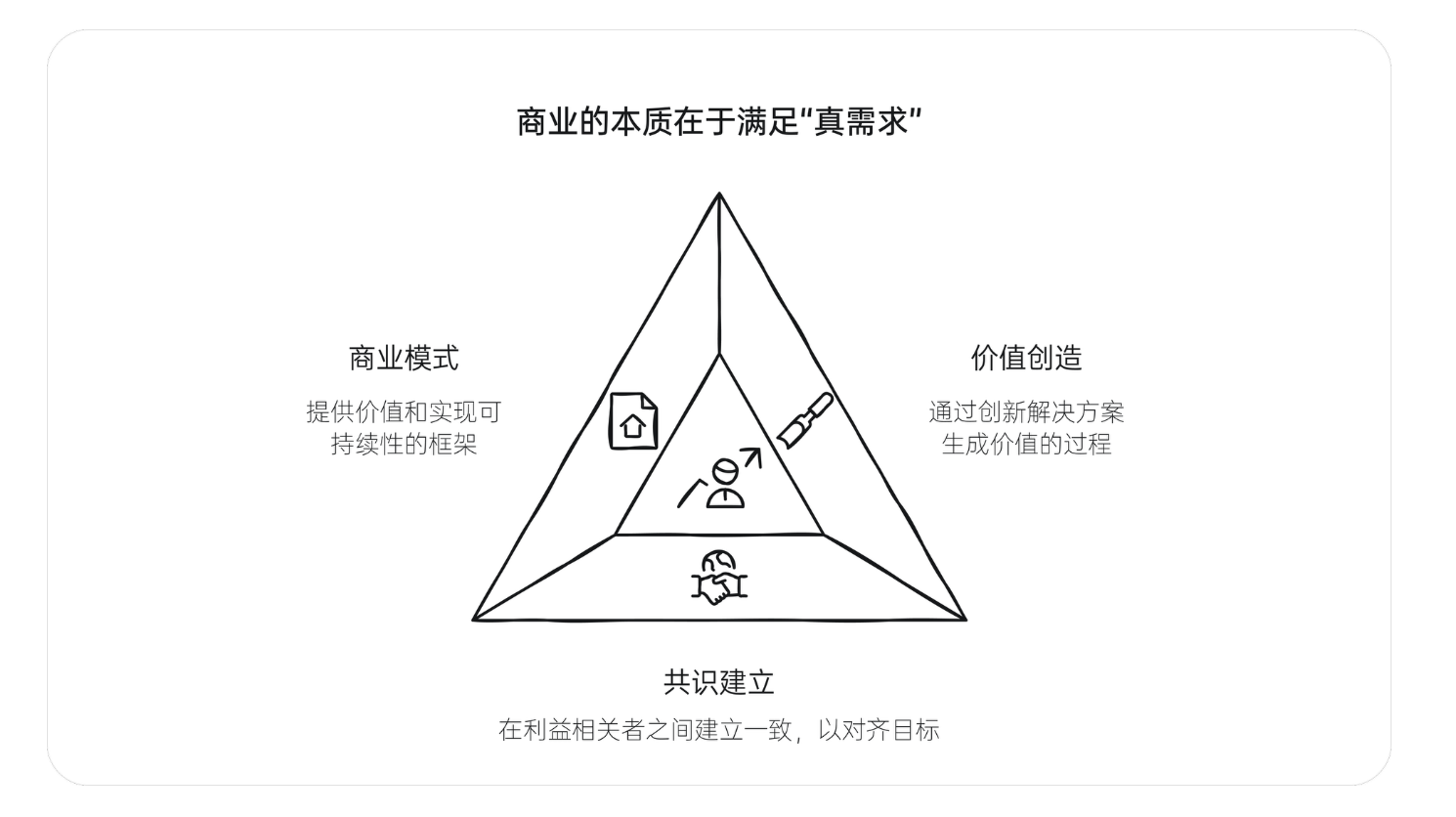 設(shè)計的本質(zhì),是通過創(chuàng)造性的解決方案,滿足用戶的真需求,實現(xiàn)多方共贏的價值閉環(huán)。從穿透表象的需求洞察,到功能、情緒、資產(chǎn)的三重價值創(chuàng)造,再到共識構(gòu)建與模式創(chuàng)新,每一個環(huán)節(jié)都離不開對 “真需求” 的堅守。