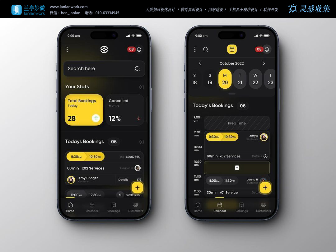 當(dāng)服務(wù)類預(yù)約 App 還困在 “淺白雜亂” 與 “功能冗余” 的窠臼中時(shí),蘭亭妙微這款暗黑系預(yù)約管理工具,用「高對(duì)比信息層」與「場(chǎng)景化功能閉環(huán)」,把服務(wù)商家的 “接單、排期、統(tǒng)計(jì)” 需求壓縮成移動(dòng)端的 “一鍵操作流”。這不僅是一個(gè)界面,更是服務(wù)從業(yè)者 “輕量化管店” 的效率武器。