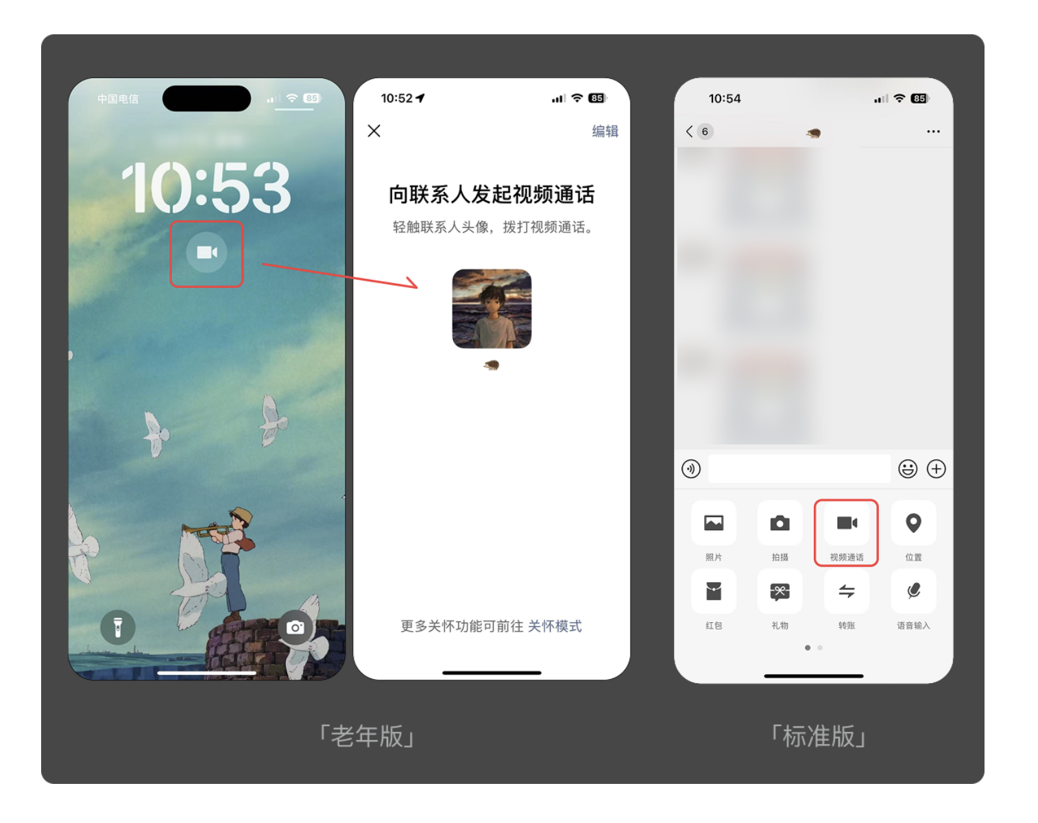 這種設(shè)計(jì)思路的核心,是 “減法思維”—— 篩選出老年用戶最常用的功能,將其置于最顯眼的位置,去除所有干擾項(xiàng),讓操作路徑最短化。