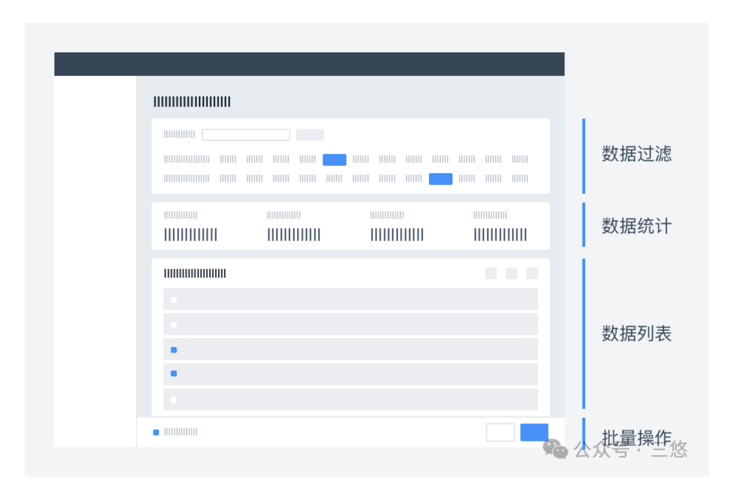 - 數(shù)據(jù)列表區(qū)域占頁面主要視覺空間,列數(shù)控制在 3-5 列,避免信息過載;