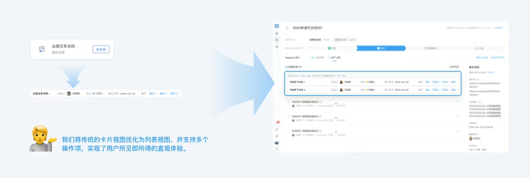 在不同系統(tǒng)平臺的適配過程中,我們特別注重交互模式的靈活性和適應性,以適應不同的適用場景。例如,我們將傳統(tǒng)的卡片視圖優(yōu)化為列表視圖,并支持多個操作項,實現(xiàn)了用戶所見即所得的直觀體驗。