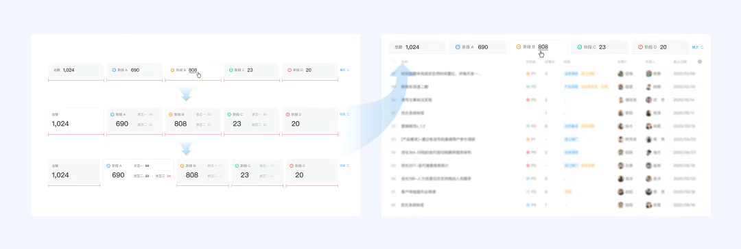 在一些管理場景下會涉及到既需要查看各階段下不同狀態(tài)的概覽數(shù)據(jù),又需要查看詳細數(shù)據(jù)的場景。