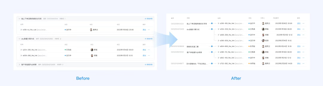 在一些既需要關注結構化的概覽數(shù)據(jù)又要方便查看詳細數(shù)據(jù)的場景中,以及在一些數(shù)據(jù)關聯(lián)、任務串聯(lián)等場景中,設計側通過可視化、結構化等設計手段探索出了一些新的業(yè)務組件,解決了數(shù)據(jù)概覽、數(shù)據(jù)關聯(lián)不清晰等問題,為用戶構建了直觀、易懂的使用體驗。
