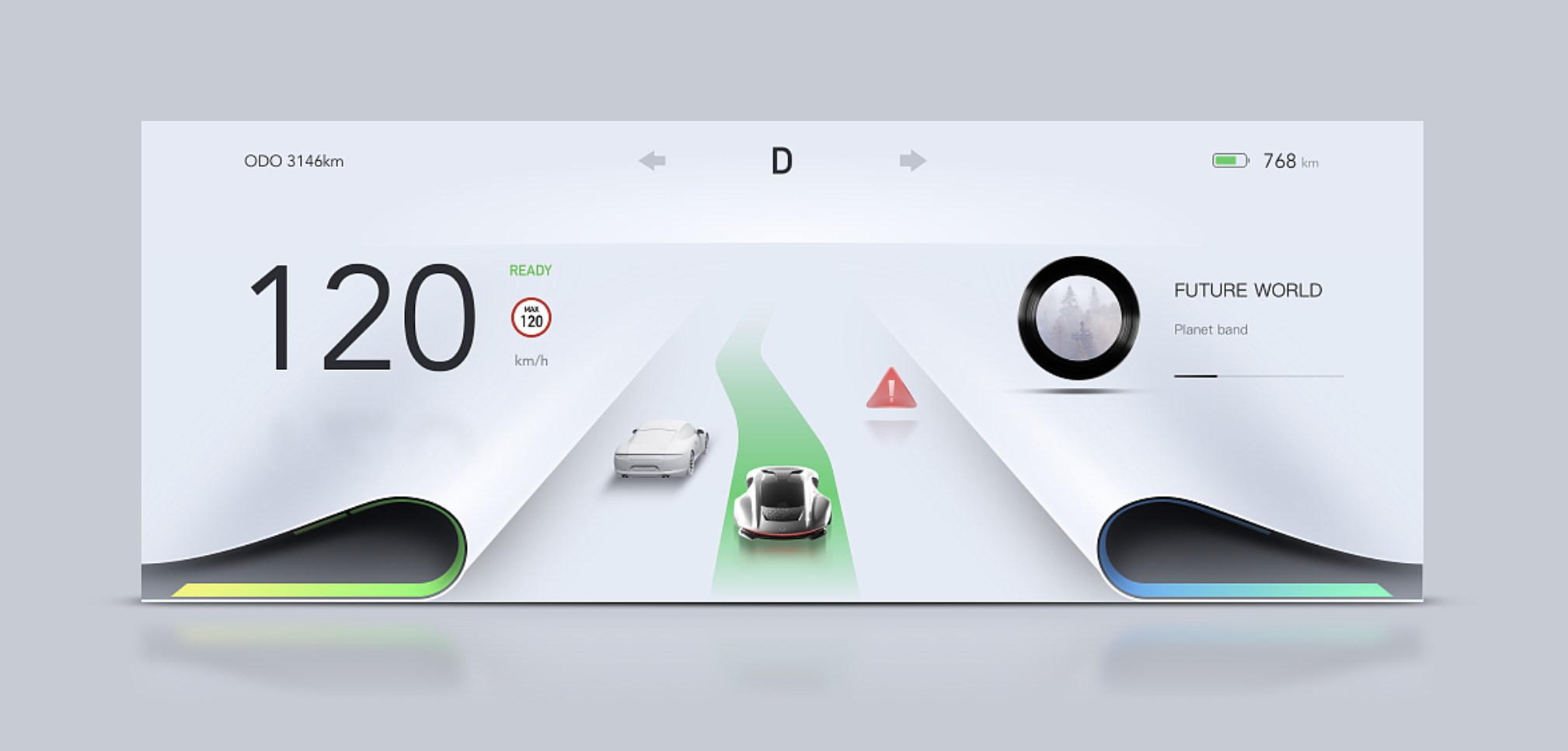 聚焦設(shè)計主題,將核心風格做到極致。若主打 “未來星際風”,可在儀表背景添加動態(tài)星軌紋理,功能模塊采用全息投影式設(shè)計,警告提示以 “星際信號” 形式呈現(xiàn);若側(cè)重 “自然生態(tài)風”,可將電量顯示設(shè)計為生長的植物圖形,續(xù)航里程隨電量變化呈現(xiàn)葉片舒展或收縮狀態(tài),通過動態(tài)效果傳遞情感。風格極致化需避免 “形式大于內(nèi)容”,所有設(shè)計元素都需為功能與體驗服務(wù)。