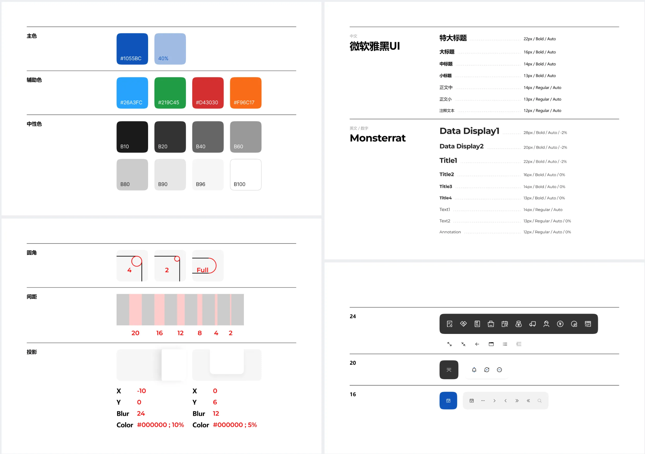 樣式規(guī)范則是UI元素上使用的樣式參數(shù)標準,比如色彩、字體、字號、圓角、投影等。在Figma中提供的Style樣式功能,就是解決樣式規(guī)范應(yīng)用的重要工具之一。
