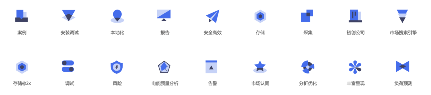 面性圖標(biāo)(基礎(chǔ)款):以純色填充為主,造型簡潔、分量感強(qiáng),傳遞穩(wěn)定、安全的感覺。適合企業(yè)服務(wù)、工具類產(chǎn)品,比如指揮中心、綜合管理、個(gè)人賬號(hào)管理等功能模塊。使用時(shí)要注意與其他界面元素的體量平衡,避免因過于厚重破壞信息層級(jí)。