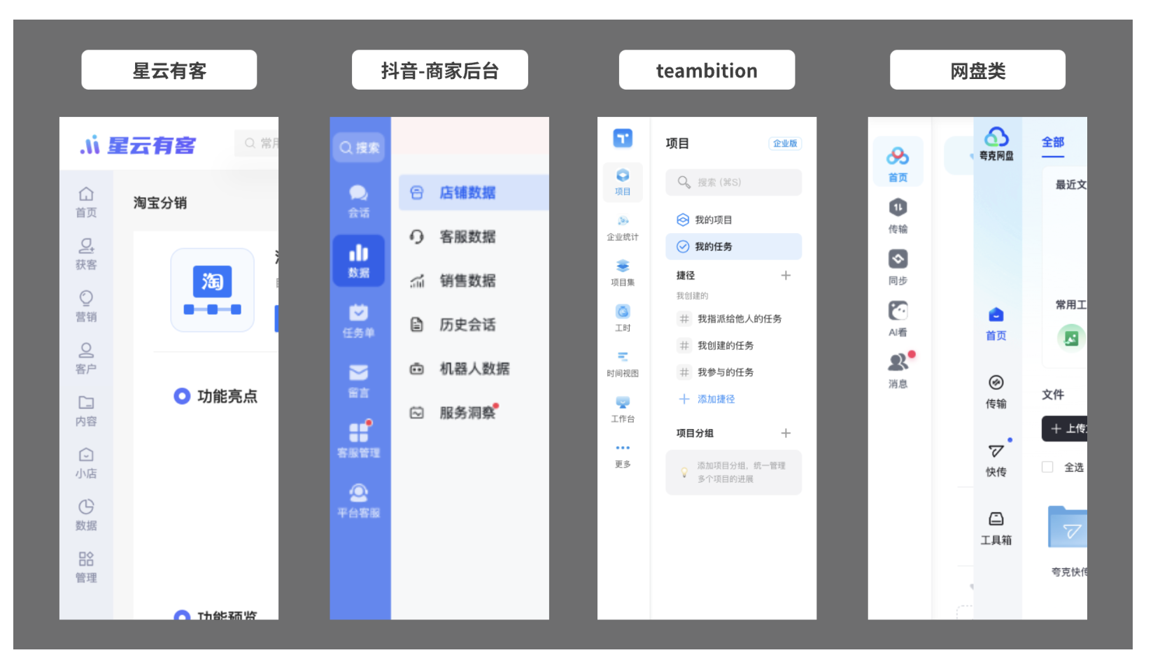 典型案例:淘寶商家中心、企微后臺、有贊微商城管理后臺。