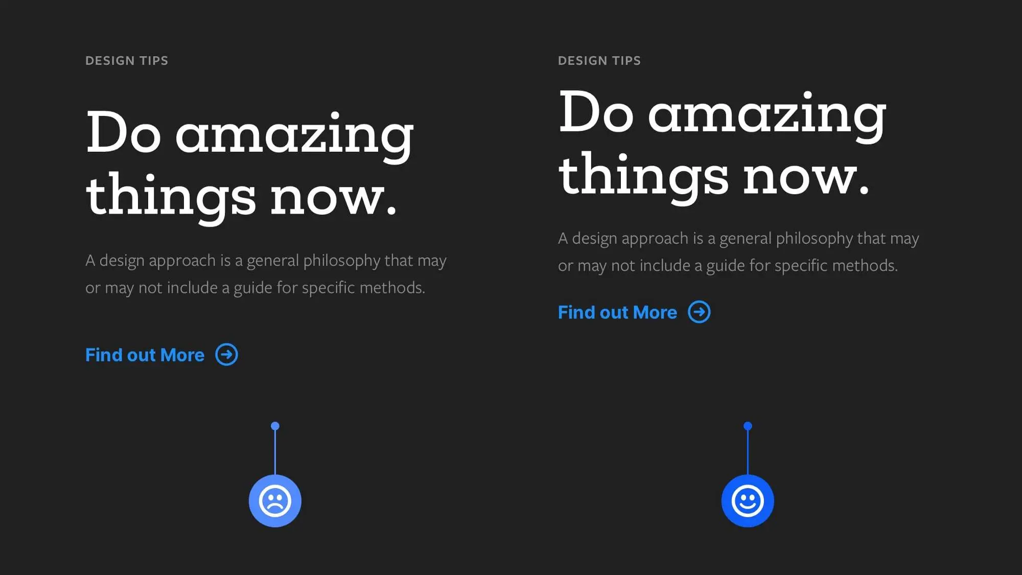 設(shè)計(jì)中推薦將標(biāo)題行高設(shè)置為文字大小的 1-1.3 倍,且標(biāo)題文字越大,行高的倍數(shù)可適當(dāng)降低。對比行高過高與行高適中的設(shè)計(jì)實(shí)例能明顯發(fā)現(xiàn),行高合適的標(biāo)題視覺更聚焦,能讓用戶快速捕捉核心信息。