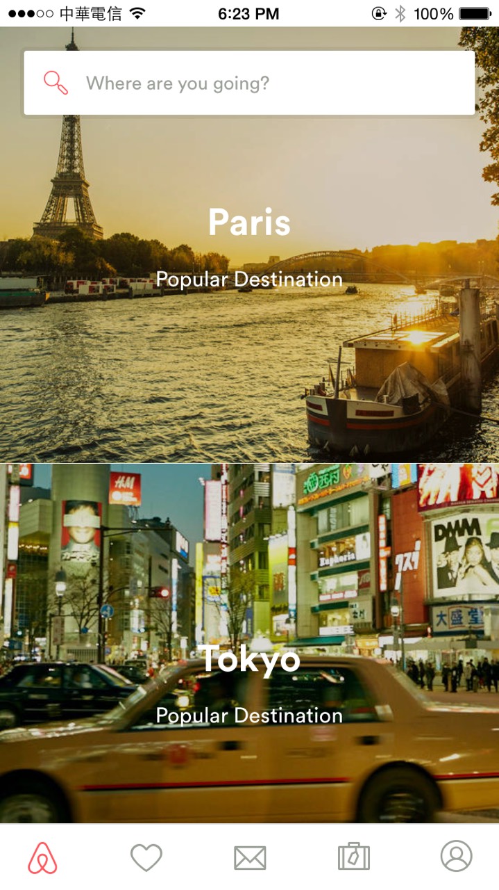 首先,品牌行銷必須要更加微型,例如:Airbnb 的品牌 Logo 就以一個不張揚(yáng)的方式嵌在應(yīng)用內(nèi)。這是因?yàn)榇蠹視硎褂媚愕?App,就已經(jīng)知道你的品牌,因此沒必要讓品牌 Logo 重複出現(xiàn)在螢?zāi)恢小?