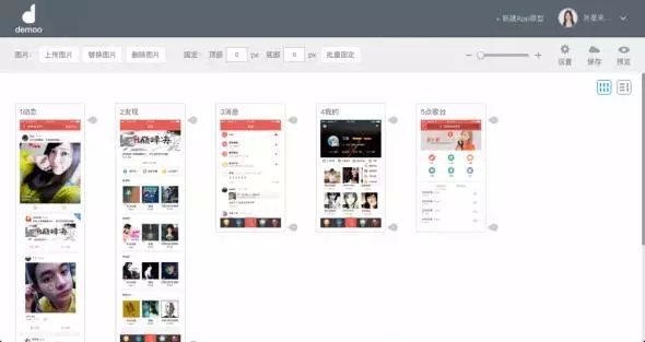 Demoo是基于web設(shè)計(jì)搭建的一款在瀏覽器內(nèi)進(jìn)行可視化操作的工具。通過(guò)上傳平面稿件,用手勢(shì)或觸點(diǎn)熱區(qū)的方式把界面關(guān)系連接起來(lái),加入連接轉(zhuǎn)場(chǎng),輸出一份仿真APP的、可體驗(yàn)操作的設(shè)計(jì)方案,滿(mǎn)足在電腦、會(huì)議投影現(xiàn)場(chǎng)及手機(jī)上體驗(yàn)操作。點(diǎn)擊這里可查看更詳細(xì)介紹:《為移動(dòng)端方案設(shè)計(jì)演示而生的DEMOO》