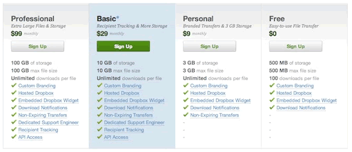 看一下Invoice Machine的例子,表格里除了最上面的三種功能,其他功能的四個條目項都一樣。該表格因此增加了沒有必要的15行。解決方法可以通過一個簡單的公告列表說明“我們的計劃都包括以下功能”,用戶能夠快速看到,他們無論選擇哪個計劃,都會具備這些功能。表格只需要縮短成3-4行,用來顯示不同的部分。我再次重申,表格應(yīng)該讓信息更易讀。如果您的表格不符合這一目標(biāo)則會適得其反。