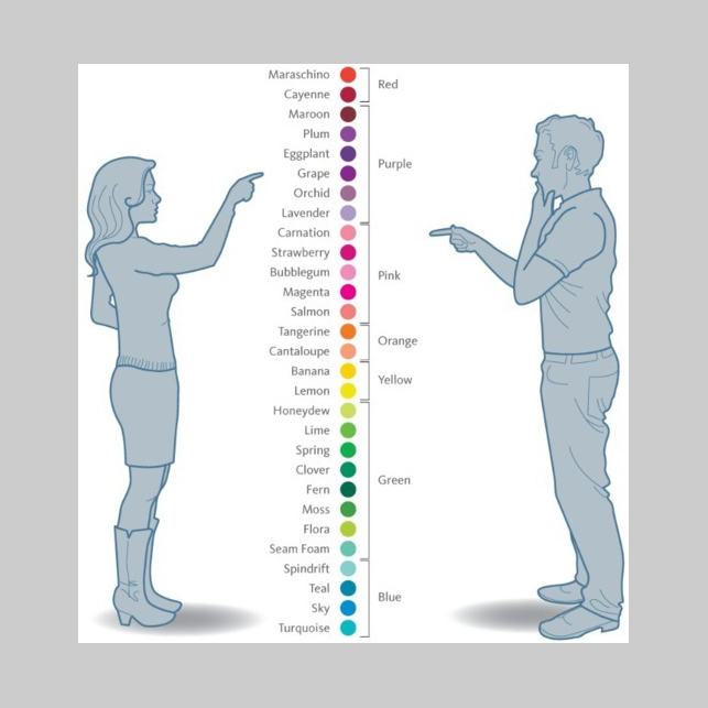 下面這個(gè)例子說明了性別差異是如何影響對(duì)顏色的感覺和選擇。