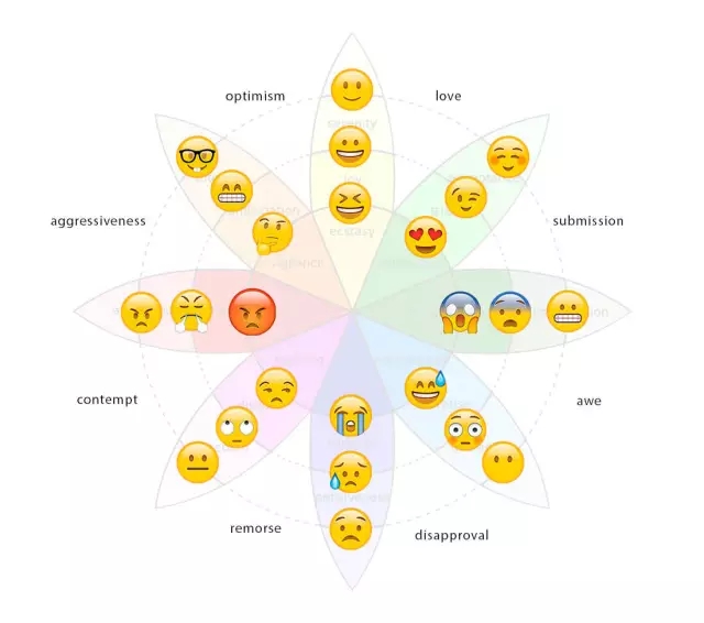 不過(guò)隨著時(shí)代的變遷,Kazim 的這個(gè)圖中的 emoji 表情符似乎比色彩更能闡明UI的情感化設(shè)計(jì)。