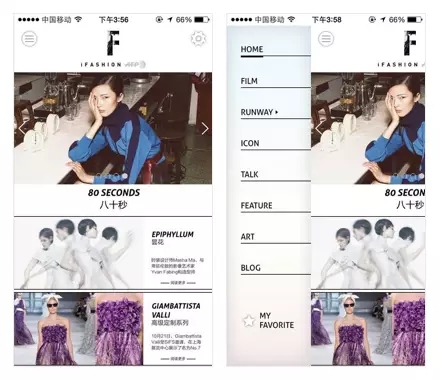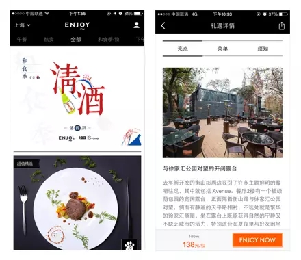 當(dāng)然,如果不是內(nèi)容為主的App,沒有太多的排版需求的話,不妨可以像iFashion,或者又是飯本出品的精選限量美食App—ENJOY—這樣,通過(guò)直接了當(dāng)?shù)暮诰€分割,也是不失干脆利落。