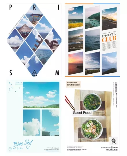 此外,對(duì)于用戶自己生產(chǎn)內(nèi)容的App來(lái)說(shuō),把用戶的圖片和文字內(nèi)容合成在一個(gè)排版好的模版里面,再分享出去,也是一個(gè)能展現(xiàn)設(shè)計(jì)水平的方式。天天P圖的海報(bào)拼圖,就是一個(gè)功能化后的海報(bào)式分享。用戶將自己拍攝的照片,添加到設(shè)計(jì)好的海報(bào)模版中,可以修改相應(yīng)的主題和文案,程序還能自動(dòng)識(shí)別照片時(shí)間、拍攝地點(diǎn),只要簡(jiǎn)單的操作就能組合出一張屬于自己的海報(bào)。通過(guò)海報(bào)拼圖分享出去的照片,是不僅是通過(guò)設(shè)計(jì)師設(shè)計(jì)的模版來(lái)提升用戶照片逼格的成果,也是用戶氣質(zhì)與產(chǎn)品氣質(zhì)交織后的成果。
