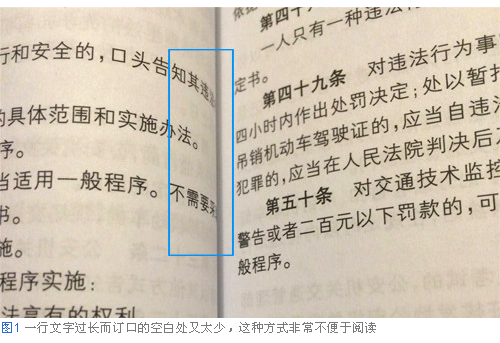 在設(shè)計(jì)工作中,如果有100個(gè)人就會(huì)有100種設(shè)計(jì)理論,我認(rèn)為并不能總結(jié)出一條絕對(duì)正確的理論。但是,如果完全沒(méi)有什么設(shè)計(jì)理論的話,貌似會(huì)使設(shè)計(jì)顯得很奇怪。比如,經(jīng)常會(huì)看到這種書(shū)籍(圖1),一行文字過(guò)長(zhǎng)而訂口的空白又處理得不太合適。只要看到這樣的設(shè)計(jì),馬上就會(huì)想到“這里好像沒(méi)有規(guī)則啊”,還會(huì)讓人產(chǎn)生“這本書(shū)的設(shè)計(jì)師好像不讀書(shū)啊”這樣的感覺(jué)。在閱讀過(guò)程中哪怕只有一些地方令人難以理解,也會(huì)讓人精神不集中,不能徹底關(guān)注文章本身。如果是一個(gè)讀書(shū)的人,他自己看看這樣的設(shè)計(jì),自己也會(huì)感到這種方式不便于閱讀啊。所以我認(rèn)為電子書(shū)的閱讀感受也是這樣,要做出理想的版面,作為設(shè)計(jì)者需要站在讀者的角度考慮,應(yīng)該尋找對(duì)于自己來(lái)說(shuō)便于閱讀的排版。因此,也借此機(jī)會(huì)來(lái)整理出網(wǎng)易云閱讀產(chǎn)品中,書(shū)籍正文文字排版的相關(guān)規(guī)則。