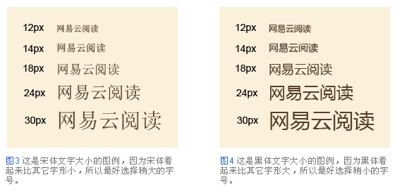 下圖是適用于一般文章正文文字大小的圖例。即便是相同大小的文字,字體不同看起來(lái)大小也不一樣。而且選擇文字大小時(shí),需要考慮文章的閱讀方式,比如,是在大屏幕機(jī)器還是小屏幕。(圖3-4)