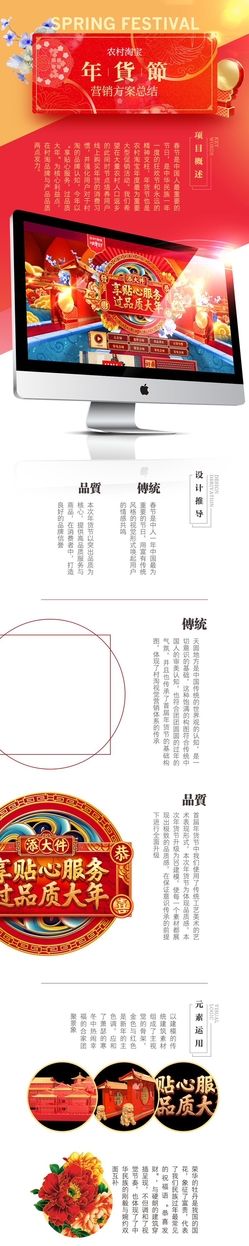 元旦已立,新春即臨,這是中國(guó)人最重要的傳統(tǒng)節(jié)日,也代表了農(nóng)村淘寶年度最為重要大型促銷活動(dòng)年貨節(jié)的即將上線。我們?cè)诒敬未蟠僦谐送瓿沙R?guī)的需求之外也進(jìn)行了多項(xiàng)創(chuàng)新性嘗試與自發(fā)的創(chuàng)新項(xiàng)目,包括針對(duì)線下?tīng)I(yíng)銷場(chǎng)景特點(diǎn)的視頻制作,創(chuàng)新大屏的全新功能上線等等。