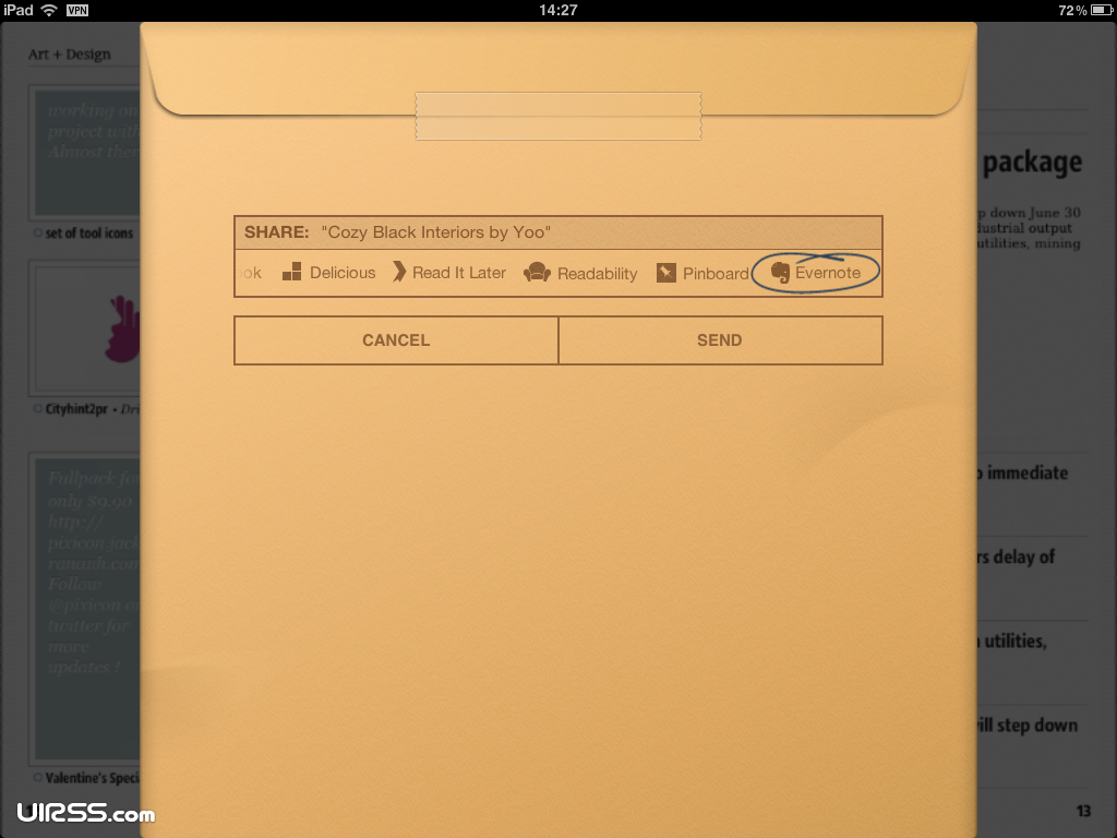 通過信封的隱喻,暗示用戶從閱讀界面進入分享界面