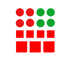 相似原則 強調(diào)的是內(nèi)容。人們通常把那些明顯具有共同特性(如形狀、大小、顏色等)的事物組合在一起,即:相似的部分在知覺中會形成若干組。下圖中,根據(jù)形狀,我們將其看成圓形和方形;根據(jù)大小,我們又可將方形看成大方塊和小方塊;根據(jù)顏色,我們可以將圓形看成紅色和綠色兩個整體。