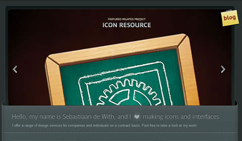 Icon Designer 通過旋轉(zhuǎn)某些元素讓自己與眾不同。這一頁面很容易成為稀松平常的無聊之作,但簡單的幾個旋轉(zhuǎn)讓它趣味十足。