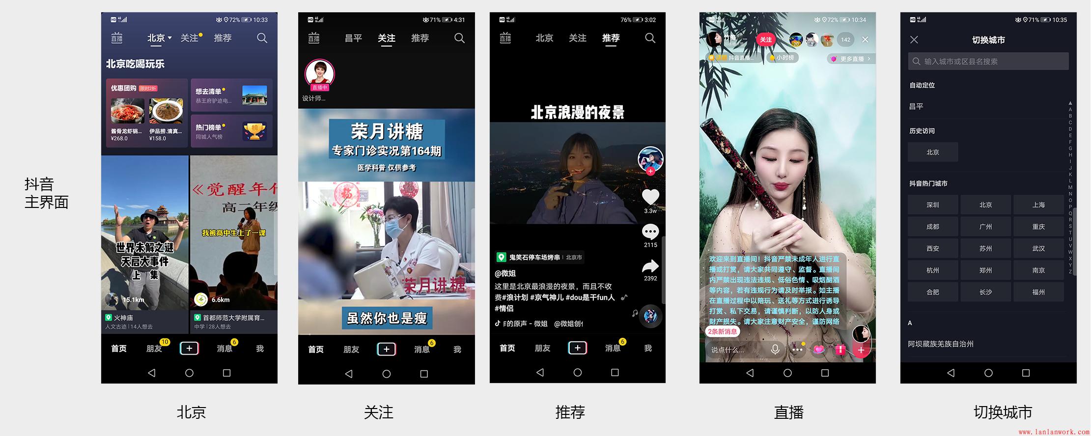 在內(nèi)容的布局上,抖音基本上各欄目就是一頁寬度放一個視頻,北京欄目下部放了2列。刷一次屏得到一個內(nèi)容,相對選擇性差。對于新用戶,這可能是個盲點。