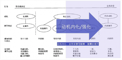 回歸到自我決定理論來看,大部分學(xué)生都處在非自我決定的階段,以無動(dòng)機(jī)或外在動(dòng)機(jī)的外部調(diào)節(jié)和內(nèi)投調(diào)節(jié)為主,他們對(duì)學(xué)習(xí)沒有動(dòng)機(jī),很難堅(jiān)持。從動(dòng)機(jī)側(cè)來看,我們要做的是把學(xué)生的動(dòng)機(jī)內(nèi)化/強(qiáng)化,去提升學(xué)習(xí)效率和學(xué)習(xí)效果的提升。
