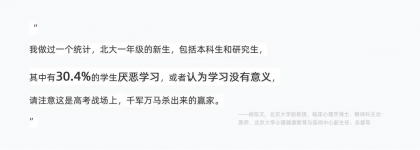 “教育是有滯后性的”作為老師或是家長(zhǎng),應(yīng)該對(duì)這句話很有感觸。學(xué)生在心智尚不成熟的階段,對(duì)于學(xué)習(xí)的動(dòng)機(jī)多來自外在。北京大學(xué),中國(guó)最高學(xué)府之一的教授就在訪談中表示: