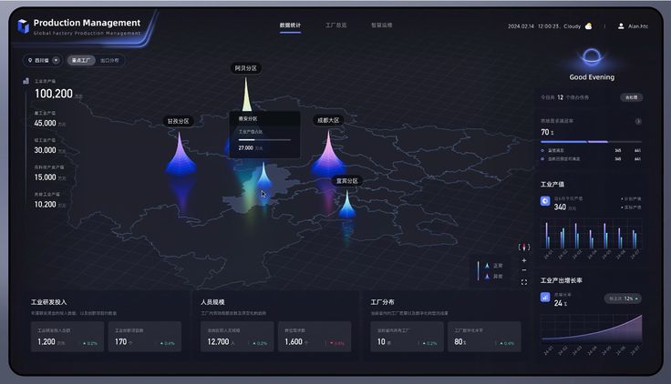 • 情景化與任務(wù)導(dǎo)向 界面設(shè)計(jì)根據(jù)用戶(hù)任務(wù)和場(chǎng)景調(diào)整數(shù)據(jù)呈現(xiàn)方式,例如金融分析、智能制造或健康監(jiān)測(cè)的數(shù)據(jù)儀表盤(pán)設(shè)計(jì)均有所不同。