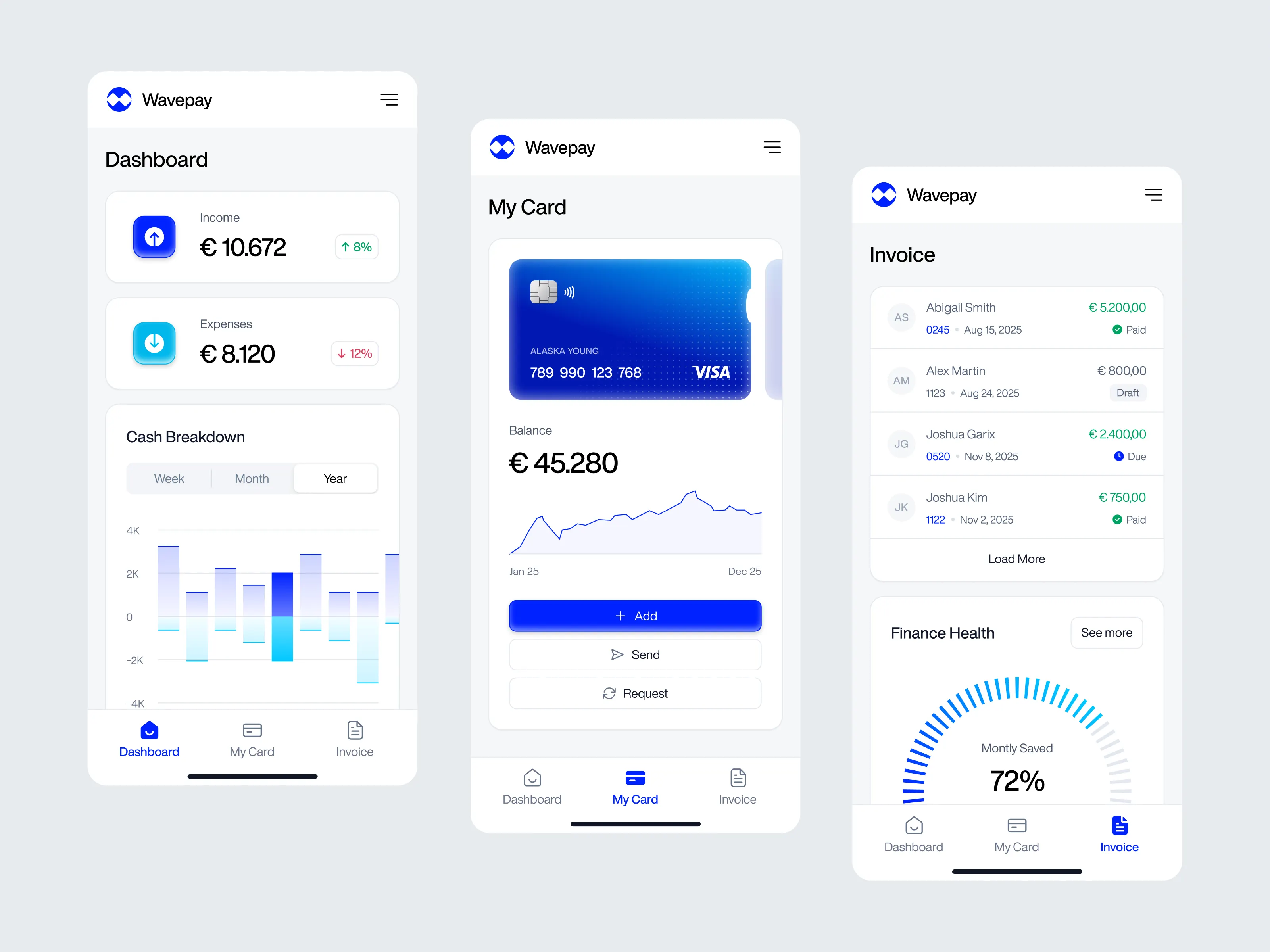 • 扁平化 + 微擬物:大部分界面遵循扁平化(Flat Design),但在圖表陰影、卡片圓角上有輕微擬物感,屬于當(dāng)下流行的“新擬物/柔性UI”趨勢(shì)。