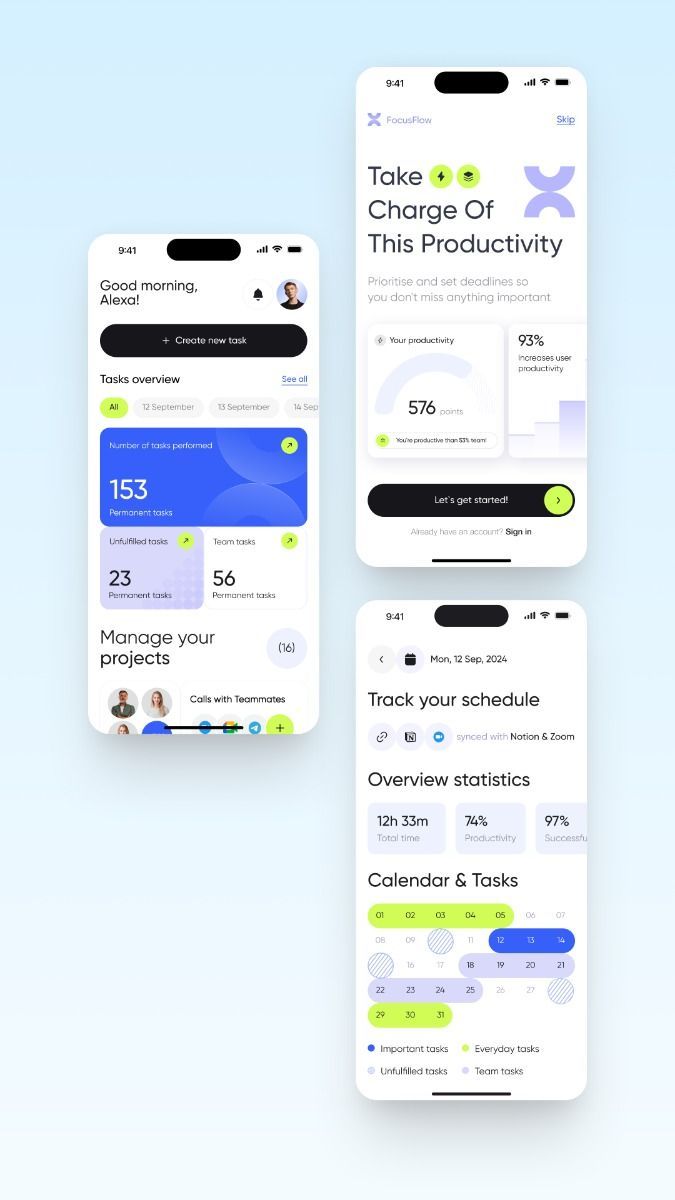模塊化卡片布局 —— 信息拆分為獨(dú)立卡片,任務(wù)、進(jìn)度、日程分區(qū)清晰。